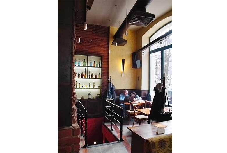 Двуетажен ресторант, разположен на централната търговска улица Витоша. Интериорният дизайн е фокусиран върху мебелите, цветовете и осветителните тела. Постигна се топла и уютна атмосфера.
