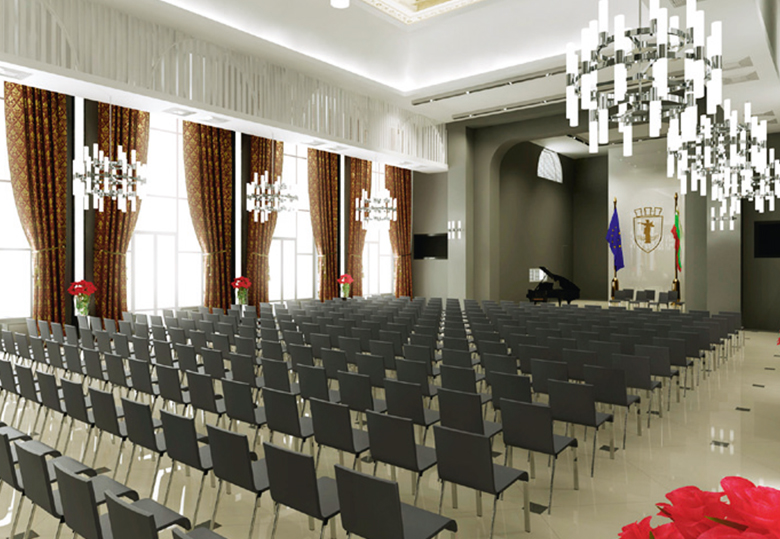 Интериорният проект на „Тронната зала” на Община Русе само засилва характеристиките на това внушително пространство в „Доходното здание” – може би най-значимата сграда в България. Предварително дефинираните класически линии са дискретно интерпретирани със съвременни детайли…