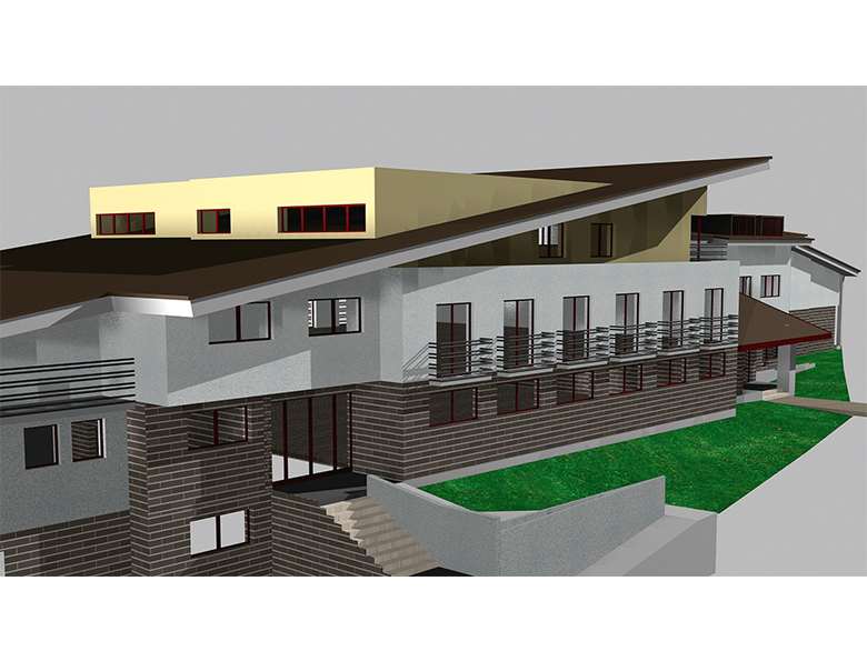 Хотел в Чифлик Жилищни сгради — 2004 Предпроектно проучване, проучващо потенциала за преобразуване на бивш дом за почивка на работници в спа хотел. Подробности за проекта Статус Концепция Обща застроена площ 4,000 m2 Клиент --- Година 2004 Галерия