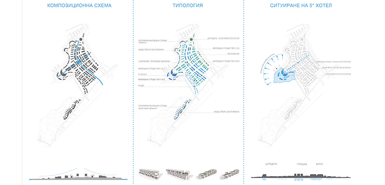 Концепцията за жилищно-ваканционен комплекс Форос в Крайморие, Бургас създава матрицата на градска структура, която съчетава качествата на класическата градска тъкан с тези на модерен морски курорт. Тъй като Форос рамкира Бургаския залив от юг, концепцията преследва разпознаваем и мощен силует откъм морето.