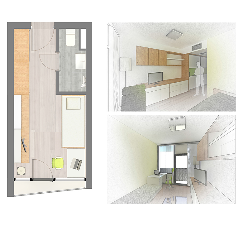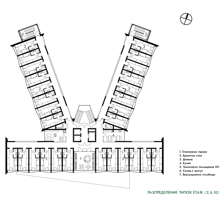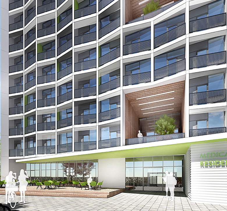 Предложението на този проект представлява медицинско общежитие, разположено в университетски кампус. Сградата се състои от три крила, свързани в центъра с вертикално комуникационно пространство.
