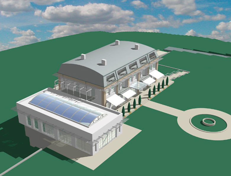 Жилищният комплекс включва една основна сграда с басейн, беседка за барбекю и сервизна сграда. Предизвикателството се крие в постигането на съвременна интерпретация на искания стил на палацо в собствен парк. Павилионът, „скрит в гората“ е малък архитектурен етюд.